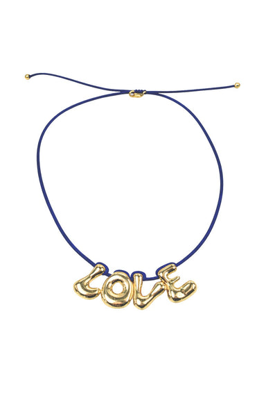 DETAILS Gold plated bubble letters Adjustable length : 14" to 21 1/2" Letter Height: 7/8"