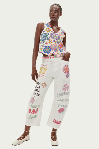 This sleeveless cotton cardigan vest brings bold texture and effortless cool with its eye-catching jacquard pattern. It’s giving vintage charm with...