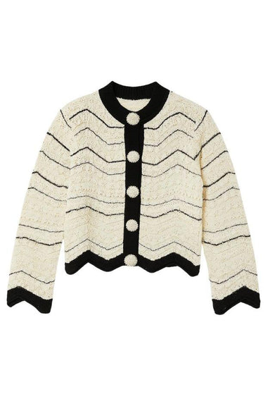 DETAILS Crewneck  Long sleeves Full button front cardigan Mother of pearl buttons High rib cuff and hem Side slits FIT True to size CARE & ...