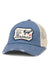 This classic trucker hat has a brushed canvas crown with mesh sides and back paneling- 5 panel structured crown with curved brim and adjustable plastic snapback. Embroidered merrowed patch on front.