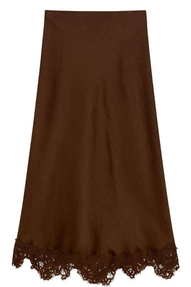 DETAILS Pull on Hidden elastic waist Bias cut Long midi length Back slit Lace trim Slightly crinkle skirt FIT Small 2-4 Med 4-6 Large 8-10 CAR...