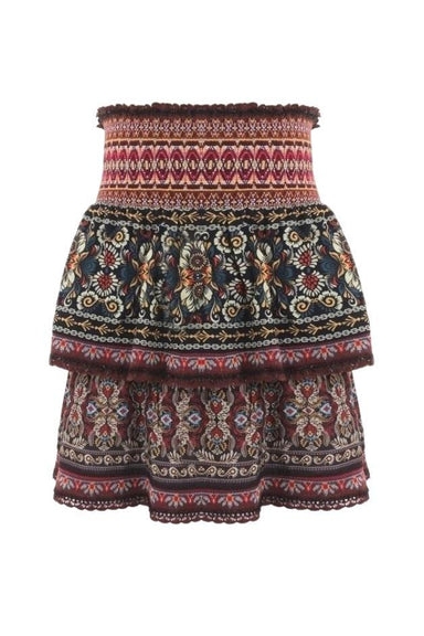 DETAILS Pull on elastic knit waist band Tiered fabric skirt Mini length FIT XS = EU 34/ US 4 S = EU 36/ US 6 M = EU 38/ US 8 CARE & COMPO...