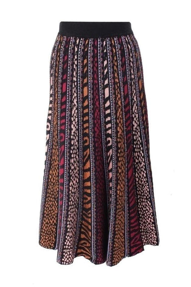 DETAILS Pull on elastic waist Midi length Allover jacquard knit Flared silhouette FIT XS= EU 34/ US 4 S = EU 36/ US 6 M = EU 38/ US 8 L = EU 40...