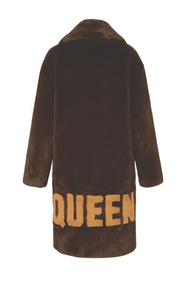DETAILS Classic overcoat styling Oversized lapel collar Deep side pockets Hidden clip closure at front Fully lined Faux Fur Contrast "QUEEN" ap...
