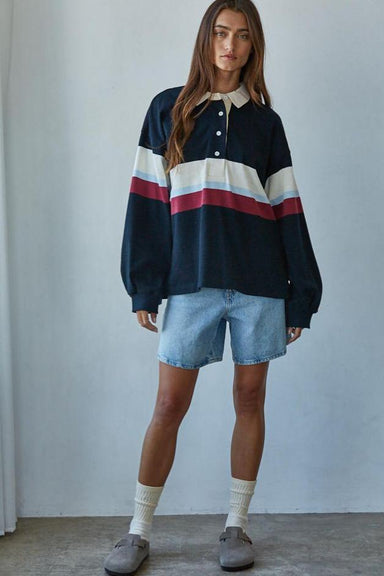DETAILS Contrast ivory trim Slight puff sleeve Snap front closures Front welt pockets FIT XS - chest 17" Length 20 1/2" S - chest 17 1/2" Lengt...
