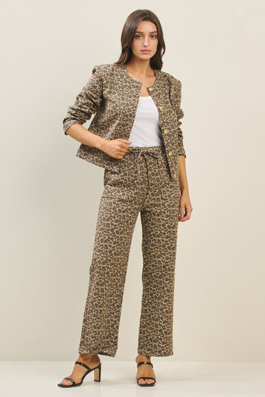 DETAILS Pull on elastic waist Non functional drawstring Full length Straight leg Patch front and back pockets Allover leopard print Heavy cotton ...