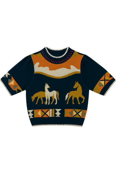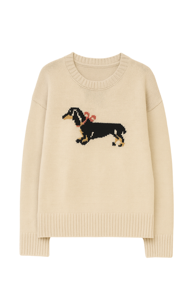 DETAILS Dog intarsia on front and back Diamond shape details on sleeve Ribbed hem, cuff and collar Button Front FIT XS - chest 19 1/2" Length 22...