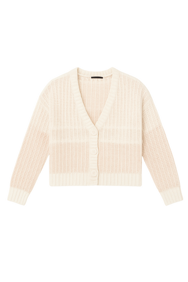DETAILS Shawl collar with fringe detail Deep V neck Long sleeves with border trim Allover jacquard knit FIT XS= EU 34/ US 4 S = EU 36/ US 6 M = ...