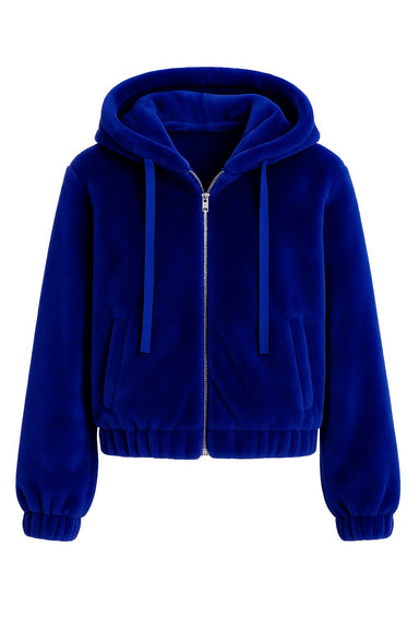 DETAILS Full zip front Hood with drawstring closure Long sleeves Elastic cuff and hem Hits at waist Side seam pockets FIT True to size We sugg...