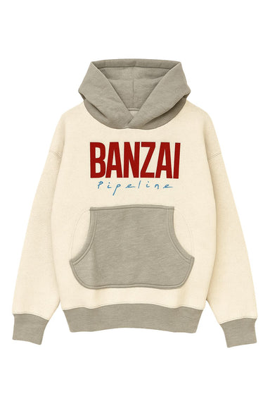 DETAILS Pullover Self lined hood Long sleeves Kangaroo pocket Inside out fleece Contrast hood, cuff and hem "BANZAI Pipeline" graphic on front ...