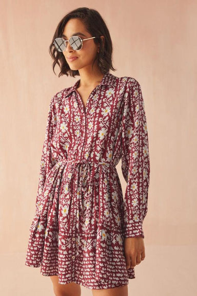 DETAILS Full button front Collar Long sleeves with button cuff Tiered skirt Self belt Easy flowy silhouette Side seam pockets FIT True to size ...