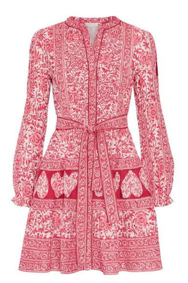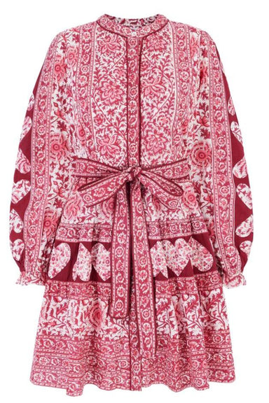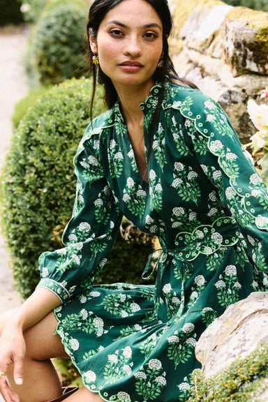 A playful twist on our bestselling silhouette, featuring a stunning hand block-printed floral design. With a flattering tiered mini skirt and ruff...