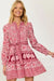 A playful twist on our bestselling silhouette, the Burgundy Patchwork Gemma Mini is crafted in rich shades of pink and burgundy, featuring a stunning hand block-printed floral design. The full-length sleeves are finished with delicate appliqué heart embroidery, adding a romantic touch. With a flattering tiered mini skirt, ruffled collar and matching belt, it’s a joy to wear. Style with or without the belt and a pair of your favorite knee-high boots.