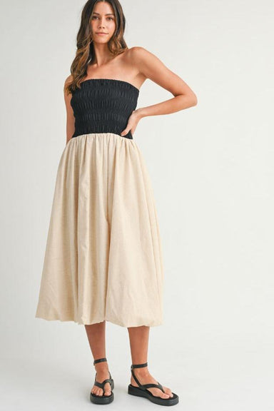 DETAILS V Neck Short puff sleeves Tiered skirt Midi length Smocking at waist Peplum ruffle at waist Contrast stitching Lined FIT XS - 0-2 S -...