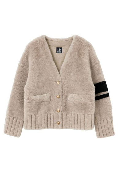 DETAILS V Neck Button front Pockets All over cable pattern Sheared sherpa Glass crystal buttons Rib hem and cuff FIT Meant to be OVERSIZED We s...