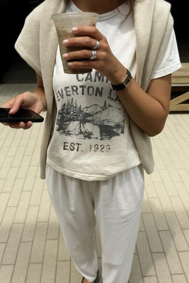 DETAILS Crewneck Short sleeves Hits at high hip Vintage inspired graphic Lightly boxy fit Graphic printed front Solid back FIT True to size Le...