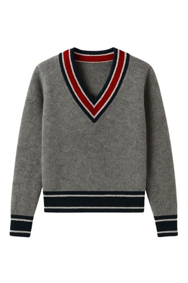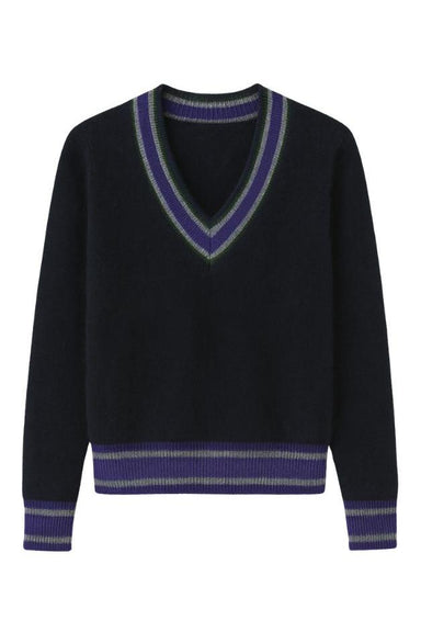 DETAILS V Neck Long sleeves Ribbed V neck, cuff, and hem Contrast stripes Brushed cashmere FIT True to size CARE & COMPOSITION 100% cashme...