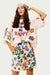 Bloom with color in the Dina pleated shorts featuring large flowers in blue, orange, purple, and yellow across a cream base.