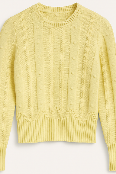 DETAILS Crewneck Long sleeves Ribbed neck, cuff and hem Intarsia pattern on front Solid back Contrast trim FIT Oversized and slouchy fit CARE...