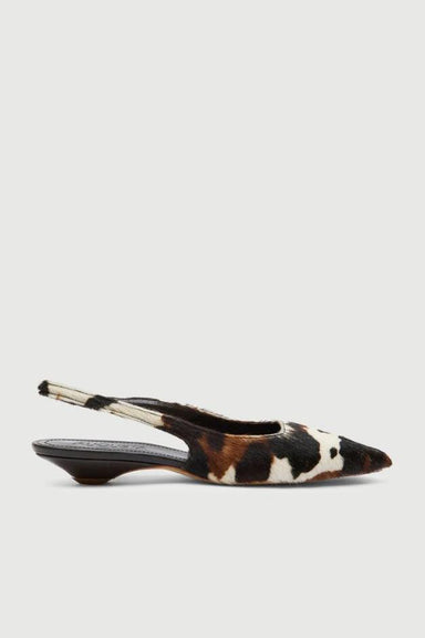 DETAILS Slingback Point toe Low profile heel Cow print hair calf FIT Runs SMALL We suggest sizing UP one FULL SIZE COMPOSITION Handcrafted in...