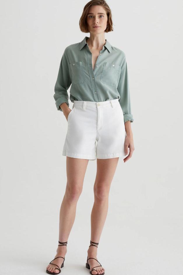 An update to AG's Caden shorts, Jude has a relaxed fit through the hips and a wider leg opening. Made from Sumptuous Stretch Broken Twill, these powder-white chino shorts are perfect for transitioning into warmer seasons.